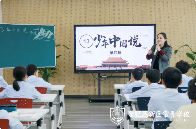 课程尾声,一场气势恢宏的配乐朗诵将氛围推向高潮!女声清亮、男声铿锵、全班齐诵,“美哉我少年中国,与天不老!壮哉我中国少年,与国无疆!” 的呐喊震彻课堂,百年家国情怀与当代少年担当在此刻交融共鸣~